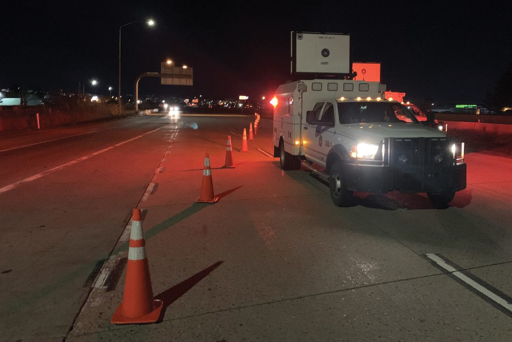 Trucks are equipped with bright lights, three foot cones and rooftop message boards to alert oncoming traffic of an incident ahead and to yield accordingly to maximize traffic flow due to the temporary lane closures.